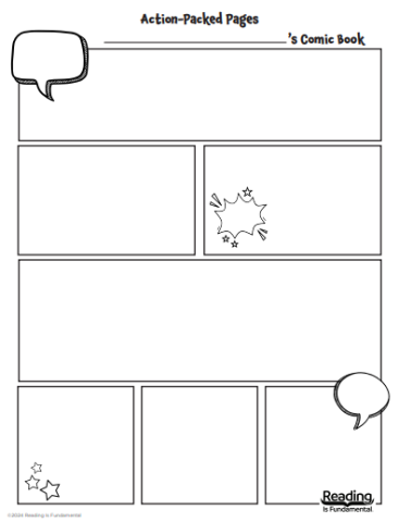 KA-POW! Use this comic book strip page to have your students create their very own action-packed comic. Encourage them to draw characters and add some fun dialogue. Go beyond the panels and unleash their creativity.