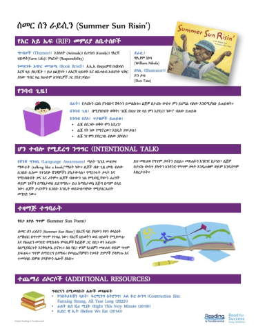 Summer Sun Risin' printable Guide for Educators provides suggestions for activating student thinking...